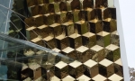 Therefore a 3D-facade consisting of gold-plated stainless steel sheets was developed. The total amount of 1600 sheets with a thickness between 1.5 and 3.0 mm are linked with special connectors and are fixed to the building with a separate sub-structure. The smoothly flowing geometry is a result of parametric modelling. The cladding has a total length of 46 m and a maximum height of 14 m.