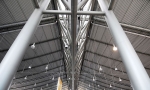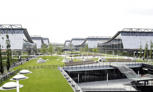 The roof structures are consisting of partly landscaped hanging roofs, supported by discrete stress ribbons spanning between column-trestles or inclined boundary trusses. In order to minimize deflections resulting from wind-suction, prestressed cable-trusses are formed at the stress ribbons between the column-trestles.